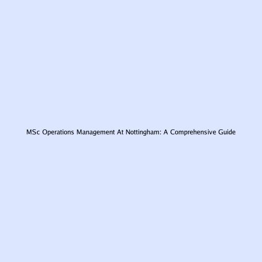 MSc Operations Management At Nottingham: A Comprehensive Guide
