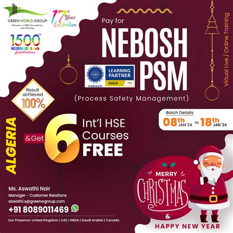 So, if you’re serious about process safety, then the NEBOSH PSM is definitely worth considering. Now, let’s get down to the brass tacks – the NEBOSH PSM fees ! When discussing the cost of the NEBOSH PSM course, it’s crucial to understand that it is a globally recognized certification. The curriculum and standards are set by NEBOSH (National Examination Board in Occupational Safety and Health), a highly respected organization. The NEBOSH PSM fees are determined by various factors, including the training provider, the course delivery method, and any additional resources or support included in the package. Always make sure to consider these aspects when you compare different course options and decide which one best suits your needs and budget. Remember, this investment can pay off handsomely by enhancing your career, providing you with expertise, and ensuring you are well-prepared for a rewarding and exciting career in process safety.
