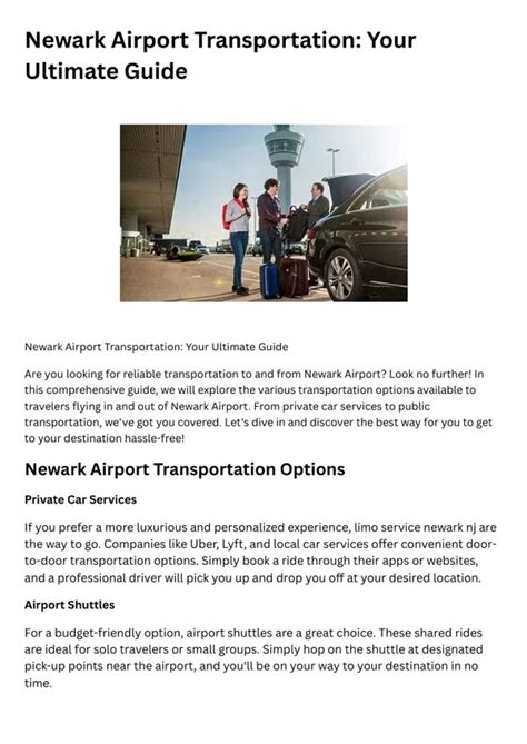 Alright, let’s talk about how to get to and from the airport, because knowing your transportation options is super important ! Newark Airport has several transportation options to choose from, depending on your budget and preferences. The AirTrain is the primary means of transportation within the airport and connects all terminals, parking lots, and rental car facilities. It also connects to NJ Transit and Amtrak, which provides access to New York City and other destinations. Another popular option is taxis and ride-sharing services, like Uber and Lyft. These are convenient, but can be more expensive, especially during peak hours. Be sure to check the estimated fare before you book your ride. There are also shuttle services that offer shared rides to various destinations. These are often more affordable than taxis or ride-sharing services, but they might involve multiple stops. If you’re driving to the airport, you’ll find various parking options, including short-term and long-term parking, as well as economy parking. Always check the parking rates and availability in advance, especially during busy travel periods. The airport also has public transportation options, such as buses and trains, that can be a cost-effective alternative to taxis or ride-sharing services. Make sure to check the schedules and routes to ensure they meet your needs. Consider your budget, time constraints, and travel style when deciding on your transportation method. Also, remember to factor in potential traffic delays, especially if you’re traveling during rush hour. By researching your options and planning ahead, you can ensure a smooth and stress-free journey to and from Newark Airport. Make sure to choose the option that best suits your needs, and enjoy the ride!