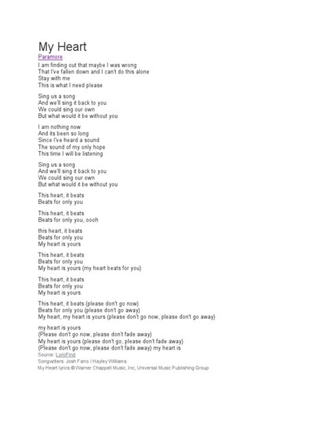 To wrap things up, the “My Heart” lyrics are much more than just words set to music. They are a carefully crafted exploration of the deepest human emotions, told through relatable narratives and enhanced by skillful lyrical techniques. Whether it’s the raw expression of love and devotion , the poignant ache of longing , the brave act of vulnerability , or the steady beacon of hope , the song touches upon universal experiences that resonate with us all. The way the lyrics unfold, building a story that mirrors our own emotional journeys, and the use of devices like metaphor and imagery, all contribute to its profound impact. It’s this combination of thematic depth, emotional honesty, and lyrical artistry that makes “My Heart” such an enduring piece. It doesn’t just provide a soundtrack; it offers a reflection of our own hearts, validating our feelings and reminding us of the powerful connections that shape our lives. So next time you hear “My Heart,” take a moment to really listen to the lyrics. You might just find a piece of yourself reflected in those heartfelt words. It’s a beautiful reminder of the power of music to articulate the inexpressible and connect us all through the shared language of the heart.