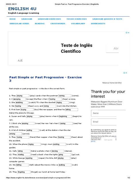 Past Simple Vs Past Continuous: English4U Guide