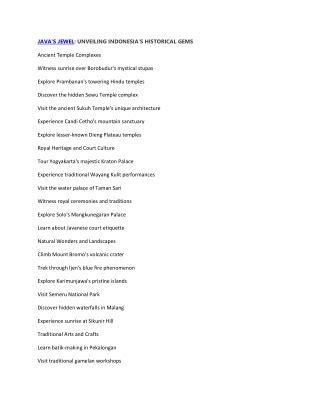 When you think of Probolinggo , Mount Bromo undoubtedly comes to mind. This iconic volcano is the crown jewel of East Java and a must-see for anyone visiting the region. Mount Bromo isn’t just a mountain; it’s an active volcano that offers a surreal and breathtaking experience. Its ever-changing landscape, from the ধূসর volcanic ash to the vibrant sunrise views, makes it a photographer’s paradise and an adventurer’s dream. Reaching the summit of Mount Bromo requires a bit of effort, but the reward is well worth it. You can choose to hike or take a jeep ride through the Sea of Sand, a vast volcanic plain that stretches out at the foot of the mountain. As you ascend, the air gets cooler, and the anticipation builds. The best time to visit Mount Bromo is early in the morning to witness the sunrise. The spectacle of the sun rising over the volcanic landscape, casting a golden glow on the ধূসর ash and the surrounding mountains, is simply mesmerizing. Many visitors describe it as a life-changing experience. But Mount Bromo offers more than just stunning views. It’s also a place of cultural significance for the local Tenggerese people, who consider the volcano sacred. Each year, they hold the Yadnya Kasada festival, where they offer sacrifices to the volcano’s crater. This colorful and vibrant ceremony provides a fascinating glimpse into the local culture and traditions. To make the most of your visit to Mount Bromo , it’s essential to come prepared. Wear warm clothing, as the temperature can drop significantly at high altitudes. Sturdy shoes are also a must, especially if you plan to hike. And don’t forget your camera to capture the unforgettable scenery. In addition to the sunrise view, consider exploring the surrounding area. The Sea of Sand is a unique landscape that’s worth exploring, and there are several viewpoints that offer different perspectives of Mount Bromo . You can also visit the nearby villages to learn more about the local culture and way of life. Mount Bromo is more than just a tourist attraction; it’s a natural wonder that inspires awe and wonder. Whether you’re a nature lover, an adventure seeker, or a culture enthusiast, Mount Bromo promises an experience that you’ll never forget. So, pack your bags and get ready to be amazed by the majestic beauty of Mount Bromo .