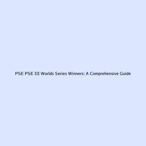 PSE PSE III Worlds Series Winners: A Comprehensive Guide