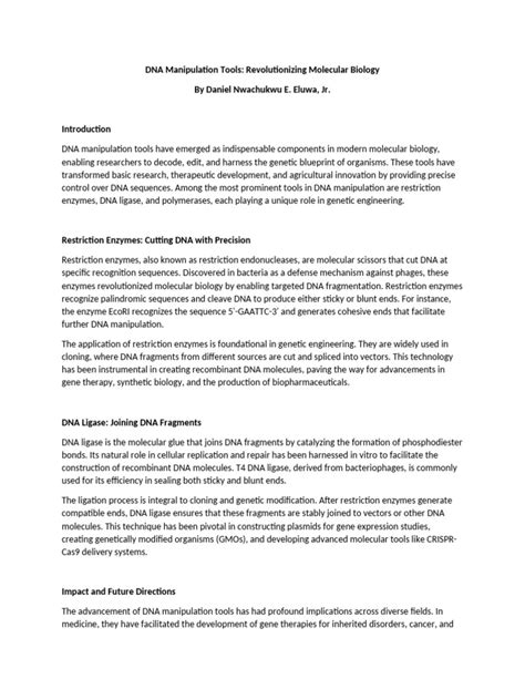 While new DNA manipulation technologies continue to emerge at a rapid pace, restriction enzymes like PseII are far from becoming obsolete . In fact, their role is evolving. With the advent of CRISPR-Cas9 and other gene-editing tools, the precision offered by restriction enzymes is still highly valued. For instance, creating specific DNA constructs for CRISPR experiments often involves restriction digests to insert guide RNAs or repair templates. PseII, with its unique cleavage pattern, can be particularly useful in generating specific ends for these sophisticated genetic engineering workflows. Furthermore, the development of engineered restriction enzymes and nickases (enzymes that make a single-strand cut) is expanding the repertoire of tools available to molecular biologists. These engineered enzymes can be designed to recognize novel sequences or to cut at specific positions, offering even greater control over DNA manipulation. The field of synthetic biology, which aims to design and construct new biological parts, devices, and systems, relies heavily on precise DNA assembly. Restriction enzymes, including PseII, are often integrated into automated DNA synthesis and assembly pipelines to ensure that DNA fragments are joined correctly and in the desired order. While techniques like Gibson Assembly or Golden Gate Assembly offer seamless ways to join DNA fragments without traditional restriction digests in some cases, restriction enzymes still provide a robust and well-understood method for generating compatible ends. The ability to create specific overhangs, as PseII does, remains a fundamental requirement for many cloning strategies. Moreover, in educational settings, restriction enzymes are still a cornerstone for teaching basic molecular biology techniques like cloning and DNA analysis. Their predictable nature makes them ideal for hands-on learning experiences. So, while the landscape of genetic engineering is constantly changing, restriction enzymes like PseII will continue to be essential tools, adapted and integrated into new workflows, ensuring their relevance for years to come. Their simplicity, reliability, and specificity, when used correctly, make them enduring workhorses in the laboratory, underpinning countless research projects and biotechnological applications. The ongoing research into enzyme engineering promises even more specialized and efficient restriction enzymes in the future.