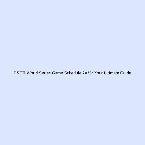 PSEII World Series Game Schedule 2025: Your Ultimate Guide