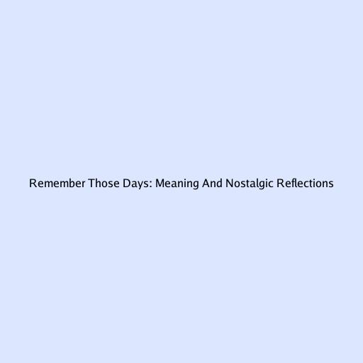 Remember Those Days: Meaning And Nostalgic Reflections
