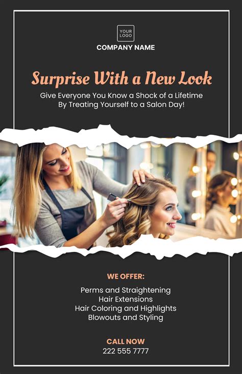 Images can speak volumes and evoke emotions, making them a crucial element of your poster design. Use high-resolution photos that showcase your salon’s services, stylists, and satisfied customers. Avoid blurry or pixelated images, as they can detract from the overall quality of your poster. Consider using professional photography to capture the best possible images, or explore stock photo websites for affordable and high-quality options. Remember to choose images that align with your brand’s aesthetic and target audience.