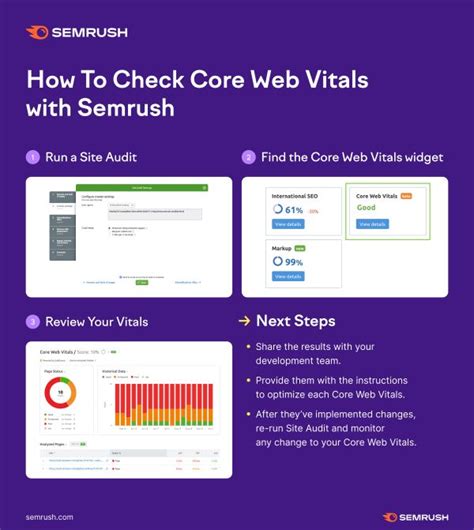 First, SEMrush offered a site audit feature that scanned your website for technical SEO issues. This was your one-stop shop to uncover problems that could be hindering your rankings. This scan included the all-important Core Web Vitals metrics: LCP, FID , and CLS . SEMrush provided the actual data, telling you how your site performed on each of these metrics. In doing so, it would alert you to any failing scores or areas requiring urgent attention, acting as a personal SEO assistant. The site audit gave you actionable recommendations to improve your scores. You’d receive detailed reports highlighting specific issues, such as slow loading images, non-optimized CSS, or unexpected layout shifts. Each issue came with tailored advice, providing steps you could take to fix it. This was like having a roadmap, guiding you through the optimization process. This not only saved time but also provided clarity to the sometimes-daunting world of SEO.