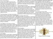 Some of the most notable promises include: the release of fifteen souls from the devotee’s family from Purgatory, the conversion of fifteen sinners from the devotee’s family, and fifteen righteous persons from the devotee’s family will persevere in grace. Additionally, the devotee will obtain the first degree of perfection, and fifteen days before their death, they will be given a profound contrition for all their sins with a perfect knowledge of them. The devotee will also receive fifteen days before their death the Precious Body of Christ, so that they may escape eternal hunger, and they will be given His Precious Blood to drink, lest they thirst eternally. Furthermore, Jesus promised to protect the devotee from all temptations, to preserve their five senses, and to protect them from a sudden death. He also promised to grant all that the devotee asks of Him, provided it is in accordance with His holy Will and for the salvation of their soul.