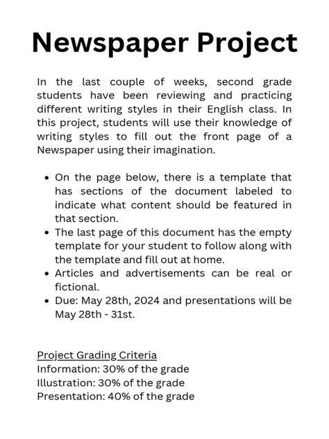Alright, let’s get down to the nitty-gritty: what kind of newspapers can students create? The possibilities are endless, guys, but here are some killer ideas to get your creative juices flowing. First up, the classic school newspaper . This is your bread and butter. Students can cover everything happening within the school walls – sports events, club activities, student council updates, interviews with teachers and staff, and even opinion pieces on school policies. It’s a fantastic way to build school spirit and keep everyone informed. Next, let’s think community newspaper . This takes it a step further, focusing on local happenings. Students can interview local business owners, report on town events, explore local history, or even investigate community issues. This really helps them connect with their immediate environment and understand civic responsibility. How about a niche newspaper ? This is where things get really fun. Think about a sports newspaper focusing solely on school or local sports teams, a science and technology newspaper delving into the latest breakthroughs, a arts and culture newspaper reviewing movies, music, books, or highlighting student artwork, or even a historical newspaper where students adopt the style and content of a specific historical period. The options are limitless, and it allows students to explore their passions. For younger students, a picture newspaper or comic strip newspaper can be a great starting point, focusing more on visuals and short, engaging text. We can also explore digital newspapers . In today’s tech-savvy world, a blog-style newspaper or a website newspaper can be incredibly engaging. Students can incorporate videos, interactive polls, and multimedia elements. It’s a great way to teach digital literacy and web design basics. And don’t forget the themed newspaper . This could be for a specific holiday, a historical event study, or even a fictional world. Imagine a newspaper from the perspective of a character in a novel or a student living during the Gold Rush! The key is to tailor the project to your students’ age, interests, and learning objectives. Whatever you choose, the goal is to make it a hands-on, engaging experience that teaches valuable skills while allowing for plenty of creativity. You can even compile these ideas into a newspaper project for students PDF document to share with your class.