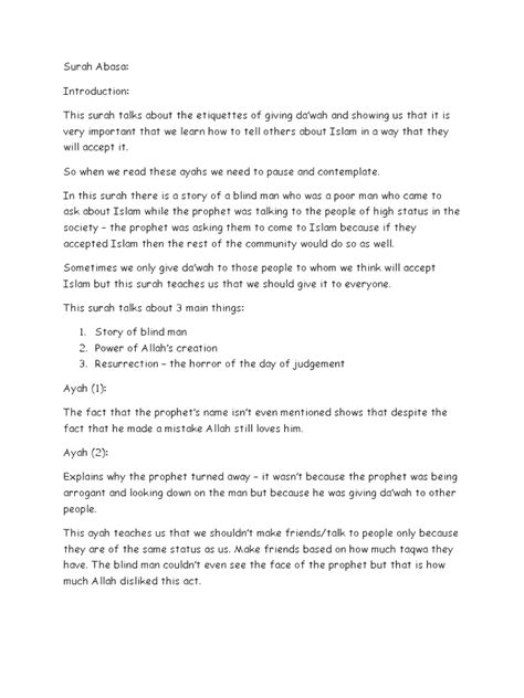 By following these tips, you can effectively use a Tafsir PDF to deepen your understanding of Surah Abasa and apply its lessons to your life. Remember, the goal is not just to accumulate knowledge, but to transform your understanding into action.