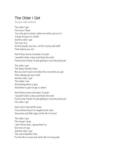 What is “The Older I Get” really all about? At its heart, this song is a profound exploration of personal growth, wisdom gained through experience, and the often surprising ways our outlook on life evolves. It’s not just about the physical act of aging; it’s about the internal shifts, the realizations that come with time, and the sometimes bittersweet understanding of our own journey. The lyrics often paint a picture of looking back, seeing past mistakes with a clearer eye, and appreciating the present moment with a newfound depth. It’s a song that acknowledges the bumps in the road, the moments of doubt, and the triumphs, weaving them all into a rich tapestry of a life lived. Many artists have captured this sentiment , but the particular version we’re focusing on today has a special way of articulating these universal feelings. It speaks to the idea that with age comes not just wrinkles or gray hairs, but a more nuanced understanding of what truly matters. It’s about shedding the superficial, embracing authenticity, and perhaps even finding a deeper sense of peace. The older I get, the more I realize that the simple things often hold the most value. It’s a powerful reminder that life’s lessons are learned over time, and that each experience, good or bad, shapes us into who we become. This song serves as a beautiful anthem for anyone who has ever paused to reflect on their life’s path, appreciating the journey and the person they’ve become along the way. It’s a song that encourages introspection and offers comfort in the shared human experience of growing older and wiser.