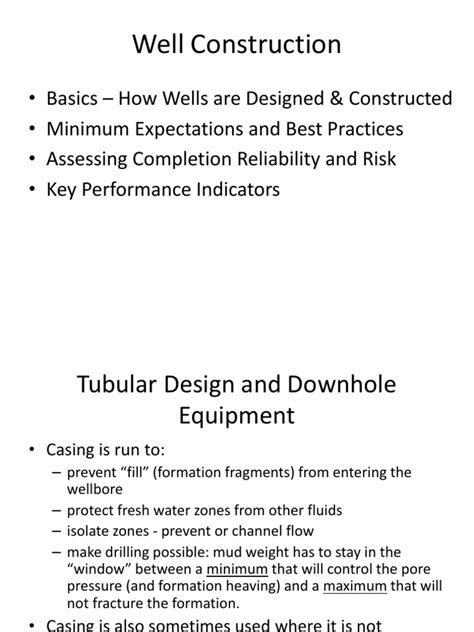 Well construction must also consider environmental impact. Proper disposal of drilling fluids and cuttings, preventing spills of fuel or lubricants, and ensuring that the wellhead is sealed to prevent surface contamination are all critical. Protecting groundwater aquifers from pollution is a primary concern.