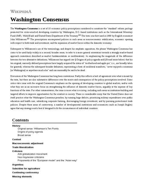 What exactly is the Washington Consensus , guys? It’s a term you’ve probably heard tossed around in discussions about economics, especially when talking about developing countries and international financial institutions like the IMF and the World Bank. Essentially, it refers to a set of economic policies that were widely promoted in the 1980s and 1990s as a blueprint for economic development. Think of it as a package deal of reforms designed to stabilize economies, foster growth, and encourage integration into the global market. The core idea was that by adopting these specific policies, countries could overcome their economic challenges and achieve prosperity. It’s not like there was a single, official document handed out that said, “Here are the 10 commandments of the Washington Consensus.” Instead, it emerged from a collection of recommendations and agreements made by the International Monetary Fund (IMF), the World Bank, and the U.S. Treasury Department. John Williamson, an economist at the Institute for International Economics, is credited with coining the term in 1989. He identified ten key policy areas that were commonly advocated and, importantly, generally agreed upon by these influential institutions. These policies were seen as the “consensus” because they were widely shared and promoted by powerful economic actors, especially in Washington D.C., the hub of these organizations. The underlying philosophy was rooted in neoliberalism , a school of thought that emphasizes free markets, minimal government intervention, and fiscal discipline. The goal was to create an environment where private enterprise could thrive, leading to greater efficiency and, ultimately, economic growth that would trickle down to the wider population. So, when you hear about the Washington Consensus, picture a set of economic prescriptions aimed at opening up economies, reducing the state’s role, and embracing market forces as the primary engine of progress. It was a pretty big deal, shaping economic policies across Latin America, Eastern Europe, and parts of Asia during its heyday.