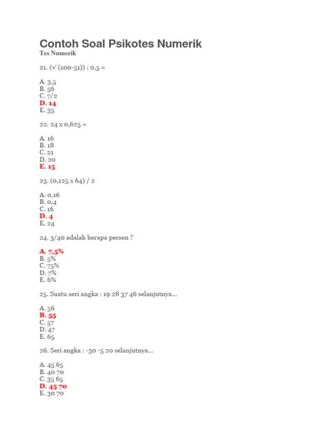 Dengan mempelajari contoh soal psikotes numerical di atas, kalian bisa mendapatkan gambaran tentang jenis soal dan cara menyelesaikannya. Jangan ragu untuk mencari lebih banyak contoh soal dan terus berlatih. Ingat, semakin banyak kalian berlatih, semakin mahir kalian!