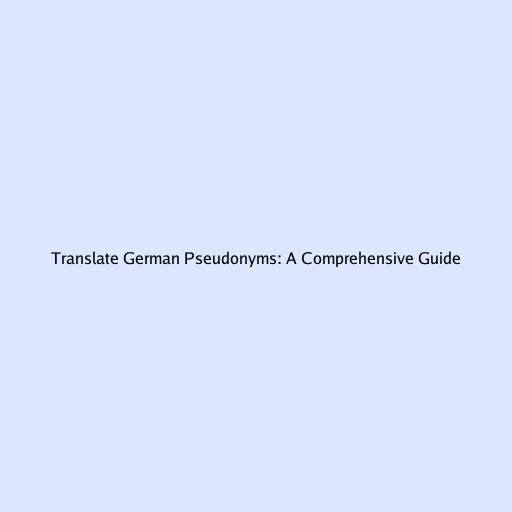 Translate German Pseudonyms: A Comprehensive Guide