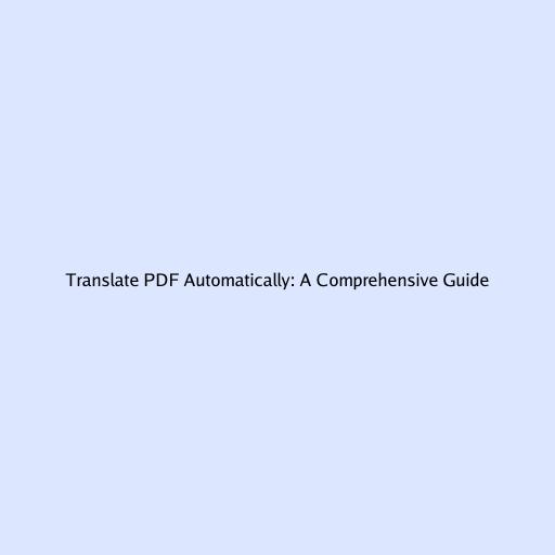 Translate PDF Automatically: A Comprehensive Guide