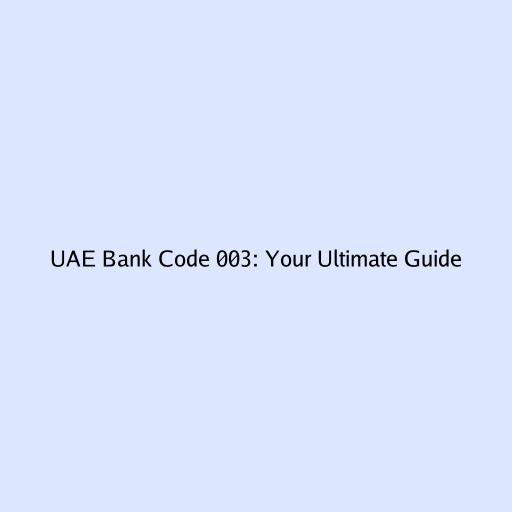 UAE Bank Code 003: Your Ultimate Guide