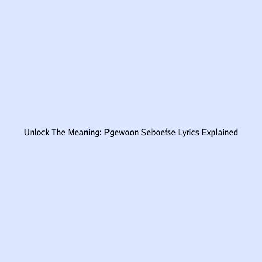 Unlock the Meaning: Pgewoon Seboefse Lyrics Explained