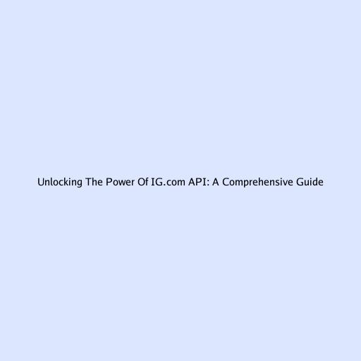 Unlocking The Power Of IG.com API: A Comprehensive Guide
