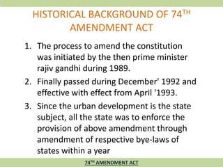 - The Genesis of the 74th Amendment: A Historical Overview
