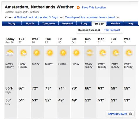 • AccuWeather, The Weather Channel, BBC Weather: These international giants also provide good forecasts for Amsterdam. They offer hourly, daily, and extended forecasts, along with temperature, wind, and precipitation probabilities. They are good for getting a general overview and longer-term planning.